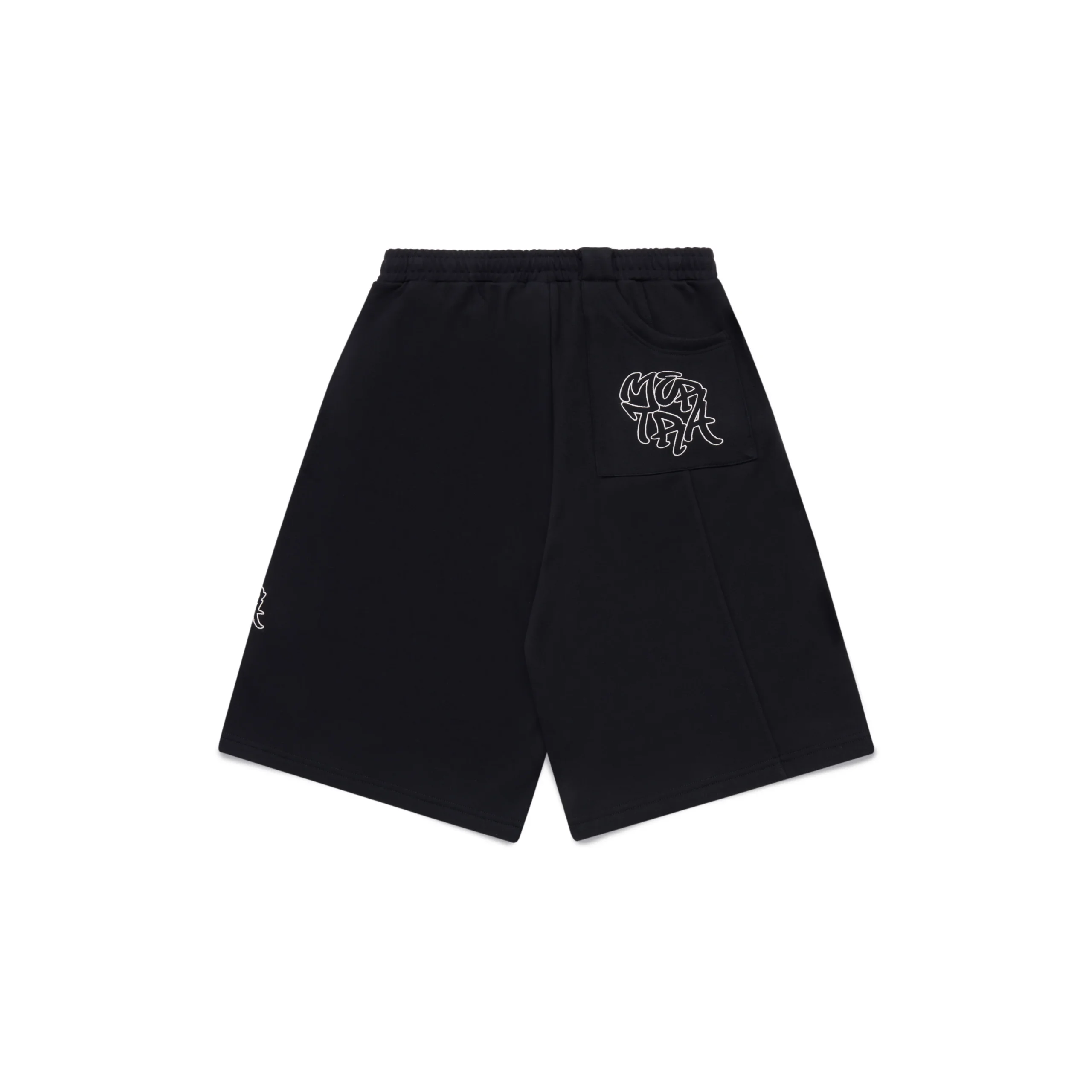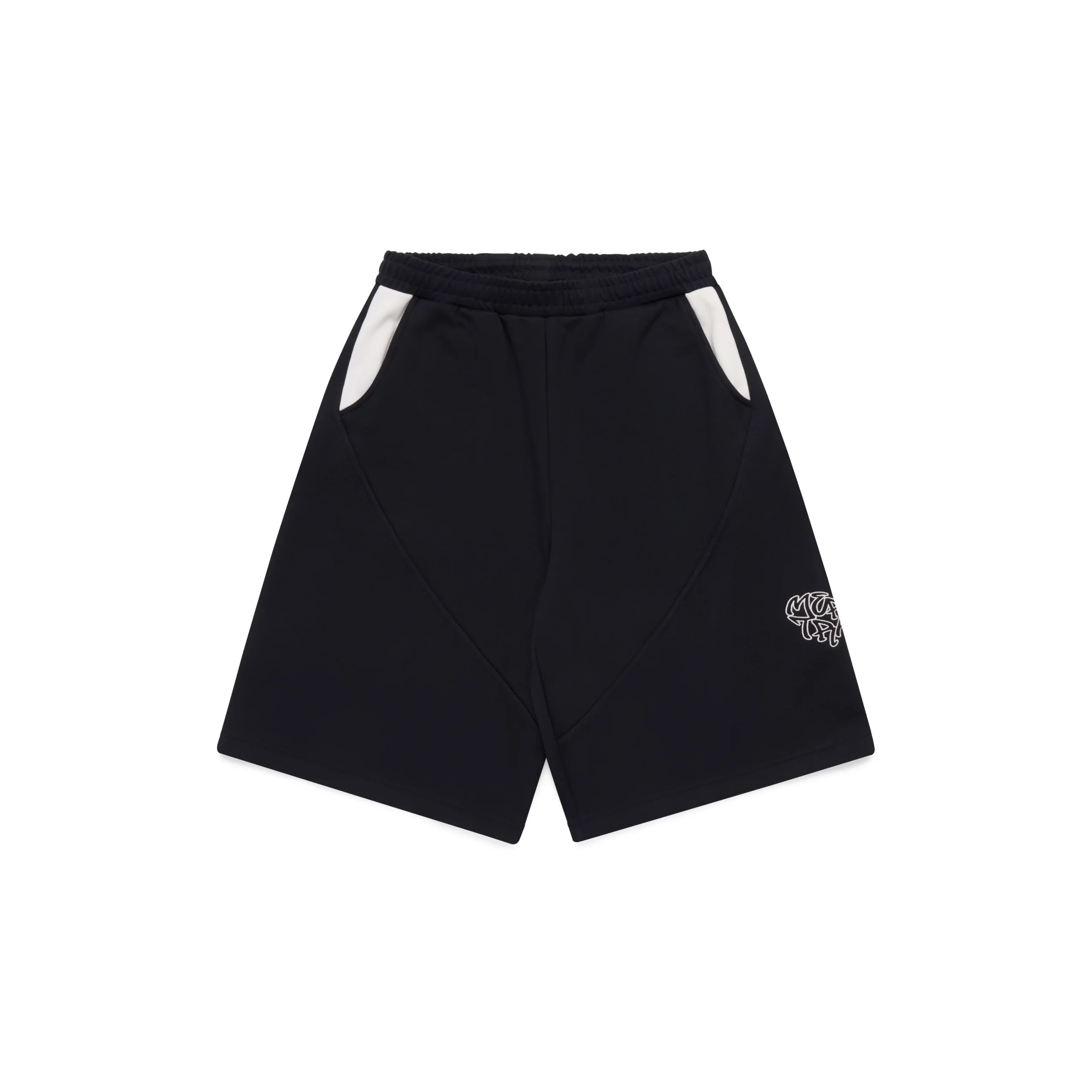 Signature curved panel lines define the silhouette, delivering a structured, modern appearance that stands apart from standard shorts. The embroidered Mertra logo adds a standout detail near the hem, while the elastic waistband keeps the fit secure and easy. Practical pockets and a roomy cut make them an ideal lightweight essential for versatile styling.