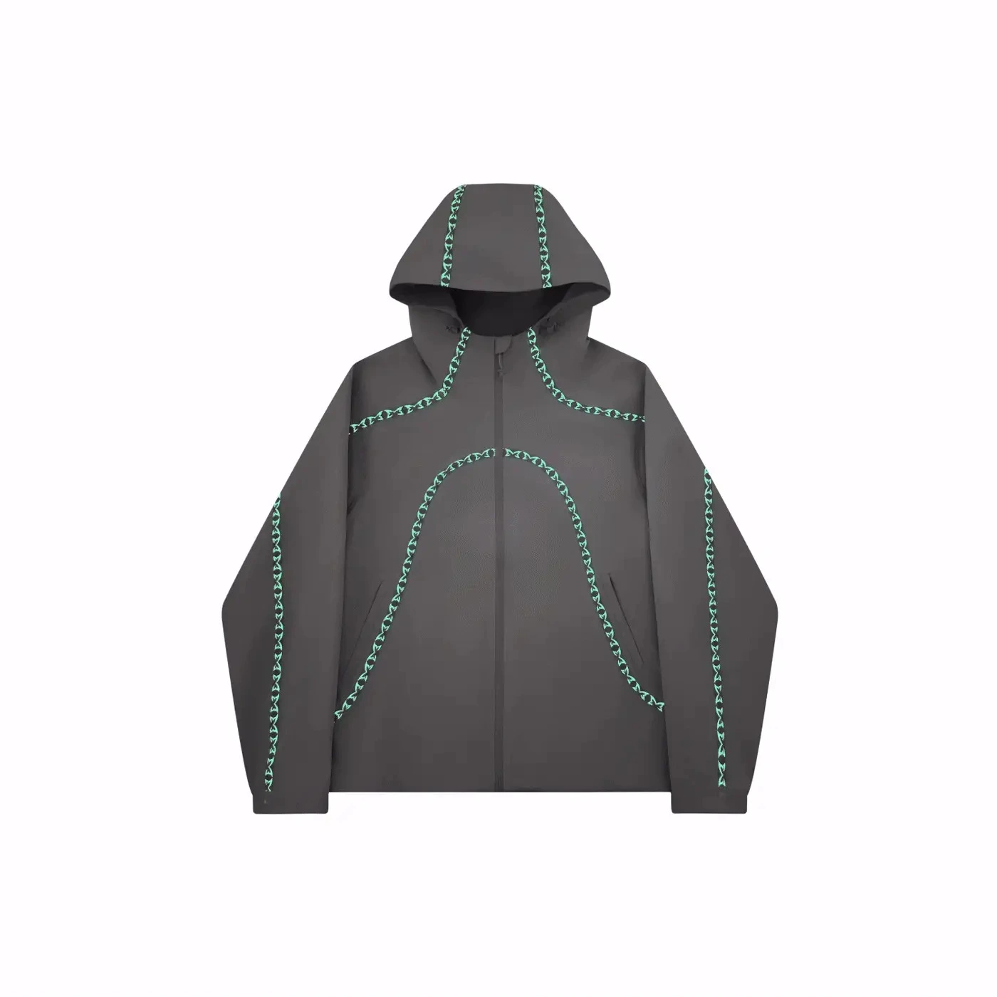 The Mertra Glow In The Dark Seam Tape Shell Jacket boosts visibility, delivers reliable performance, and elevates modern streetwear style. Its glow-in-the-dark seam details stand out at night, and its technical shell fabric shields you from the elements. This jacket blends function and fashion so you can move confidently in any environment. Built with glow-activated seam taping and monogram detailing, the jacket illuminates in dark environments, creating a striking futuristic look. Its 3L waterproof polyamide shell offers protection against rain and wind, while adjustable cuffs, lining pockets, and a free UV torch enhance utility and daily functionality. Designed with a baggy silhouette and premium construction, this jacket is perfect for night movement, urban travel, and the new Mertra techwear season.