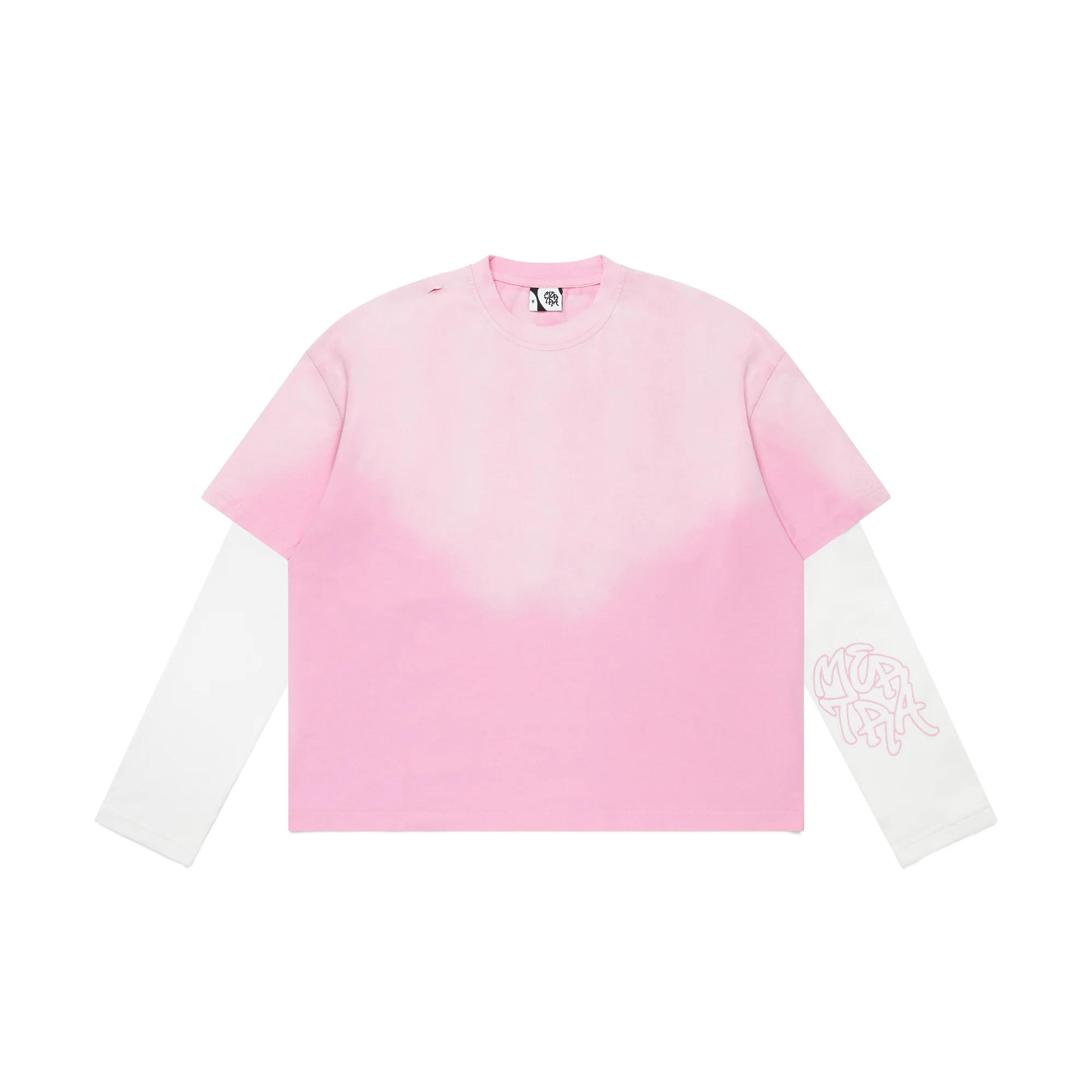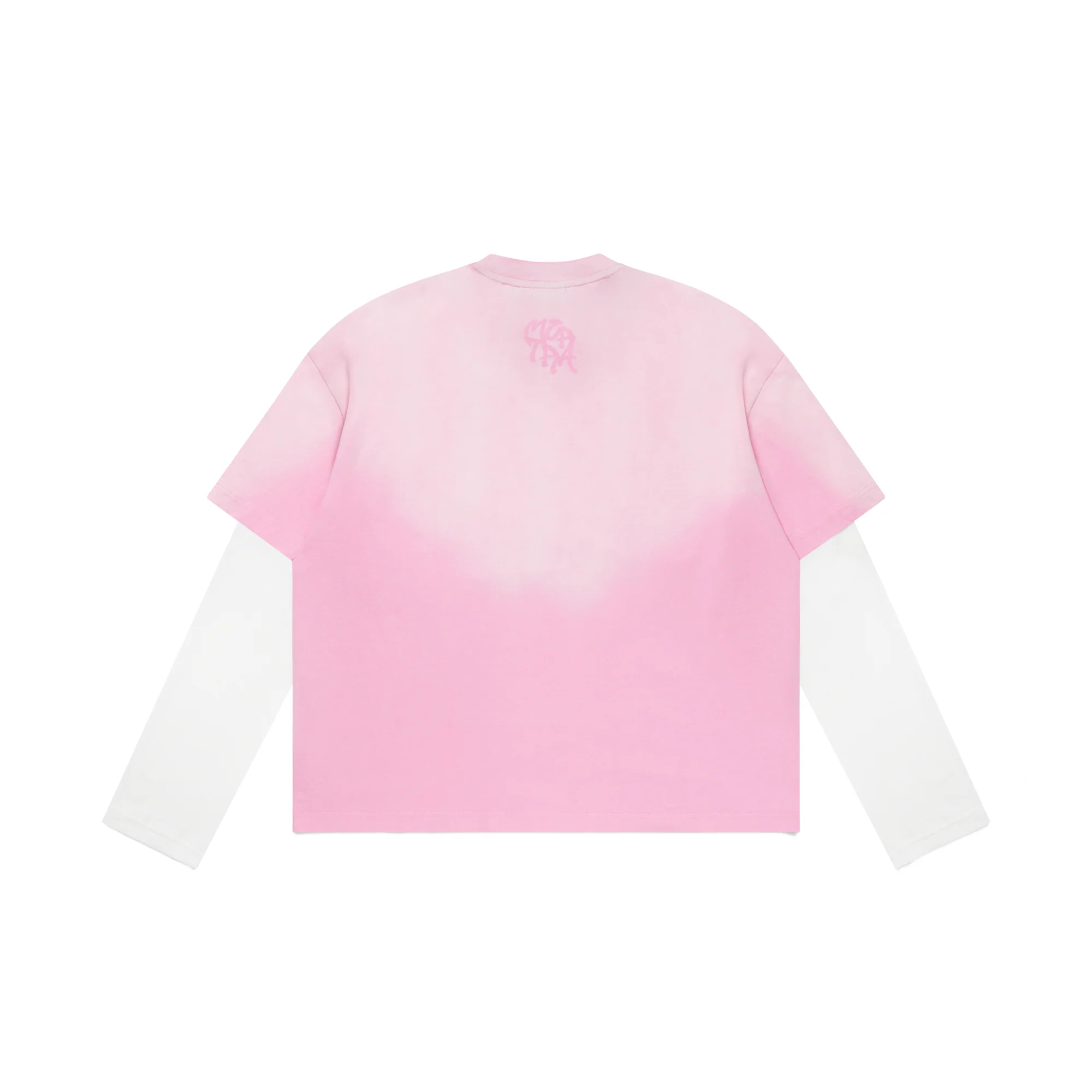 The Mertra Layered Tee (Pink) blends soft pastel tones with a fresh streetwear silhouette, creating a standout layered look without the bulk. Its pink gradient wash brings a smooth, cloud-like fade, paired perfectly with white stitched-in sleeves for a clean, modern contrast. The tee delivers a relaxed drape that feels comfortable and expressive for daily wear.