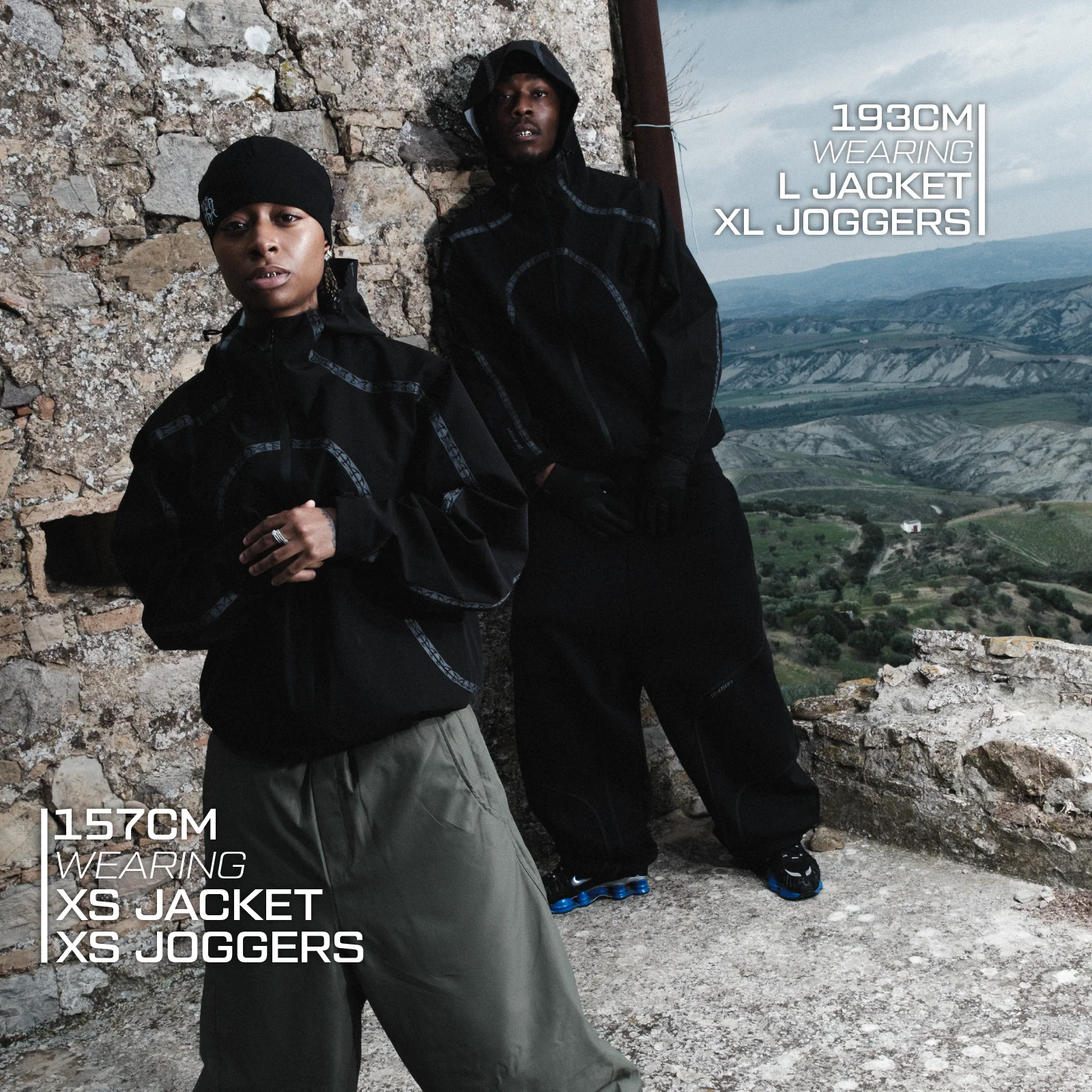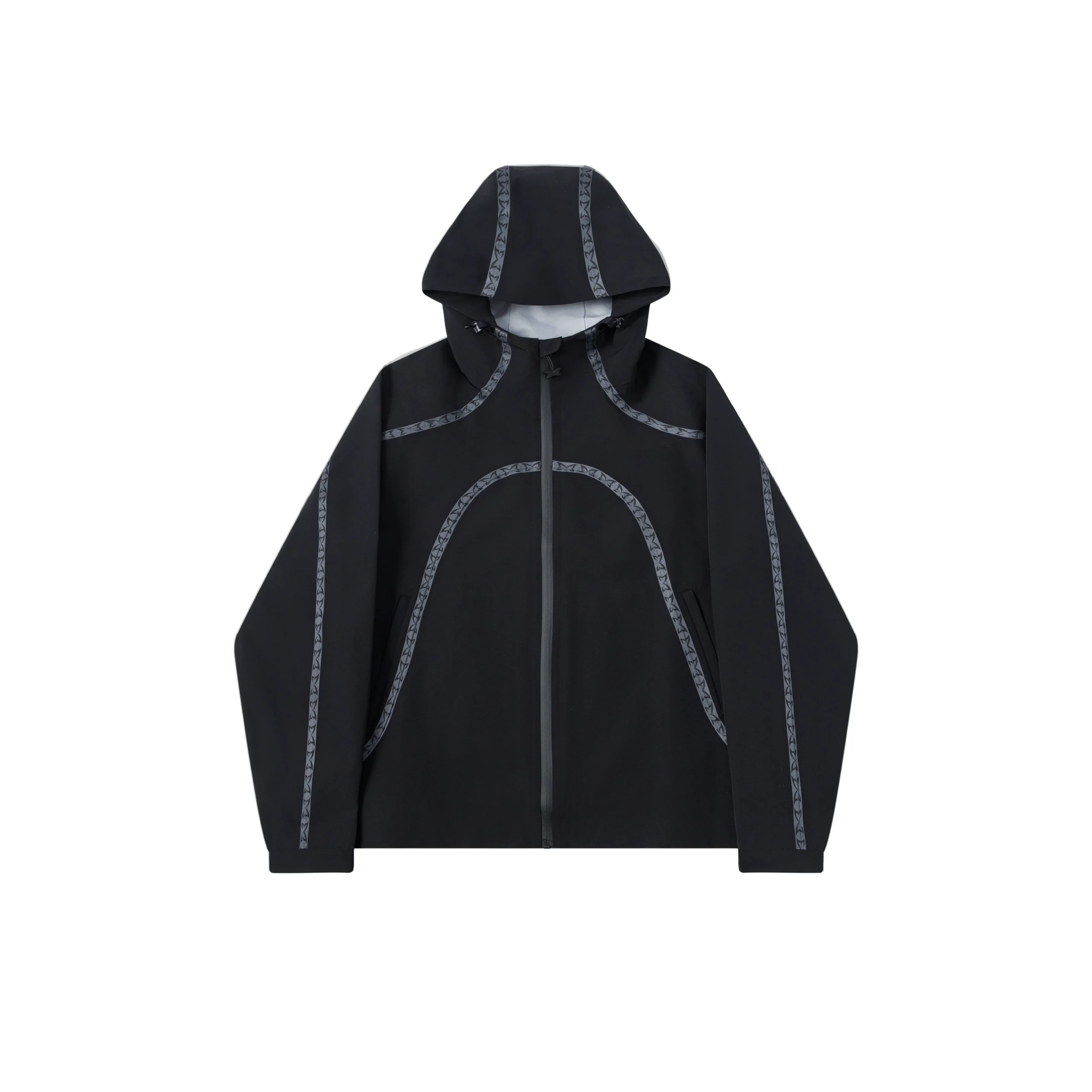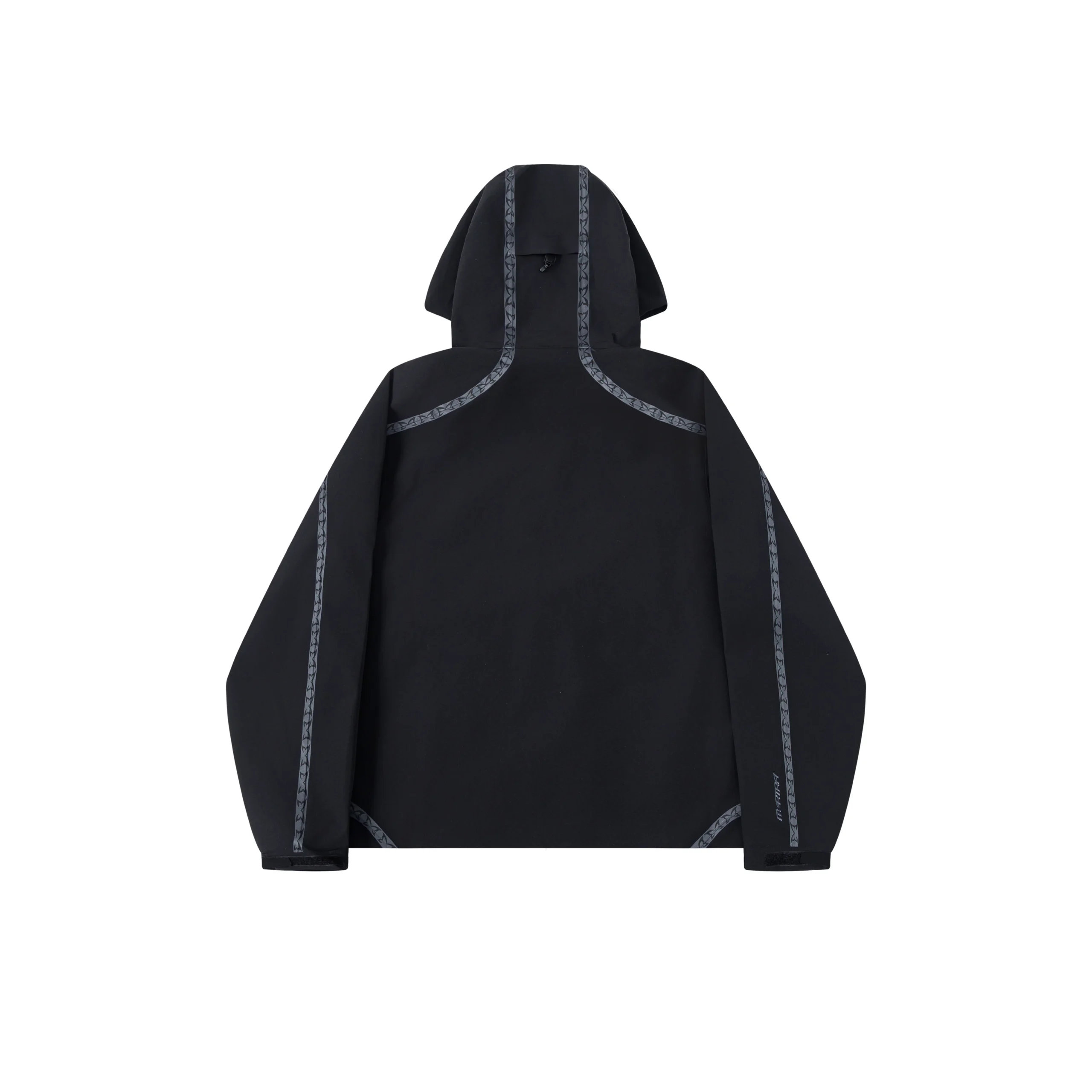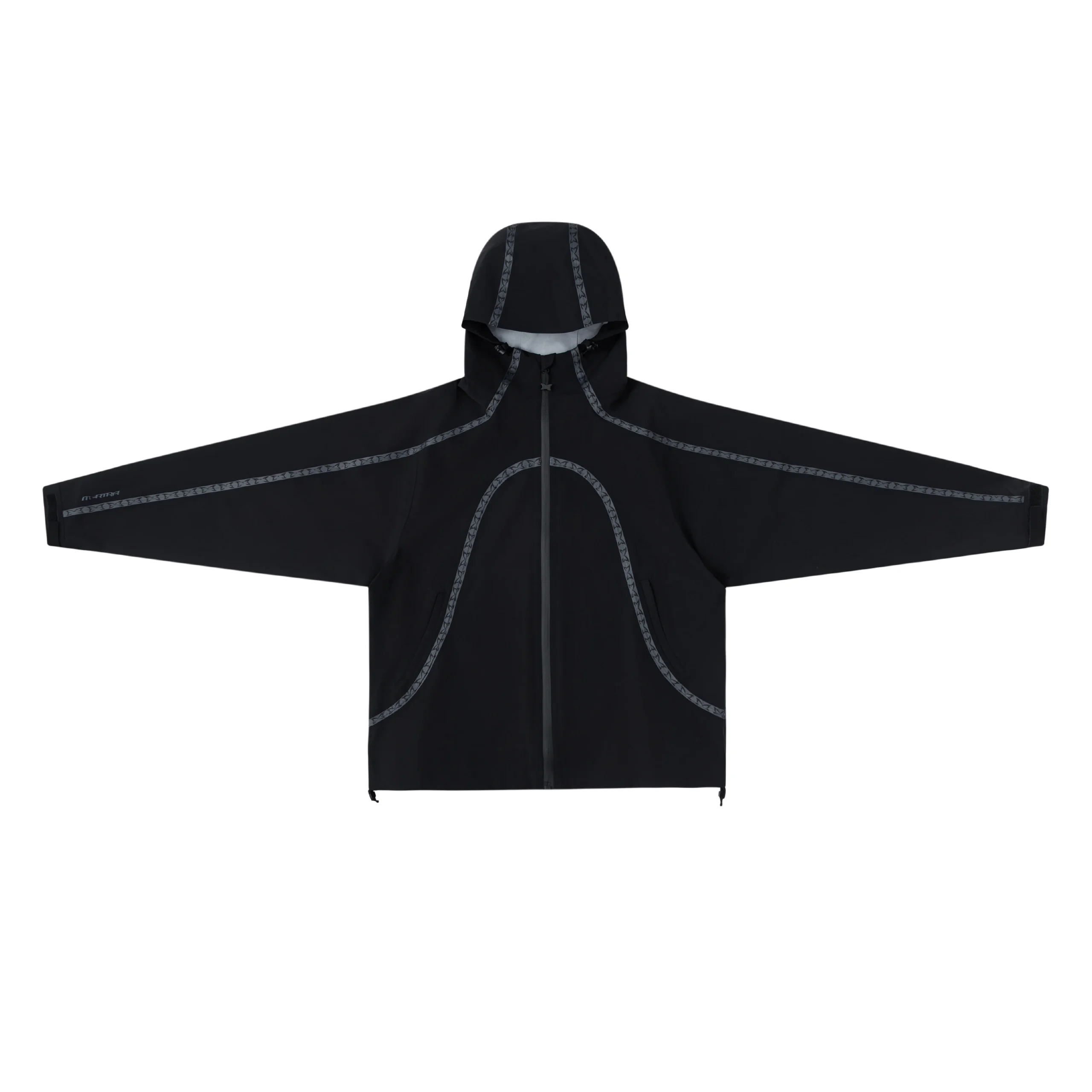 The New Drop Mertra Seam Tape Jacket (Black) is engineered for high-performance outerwear with a sharp, technical aesthetic. Built using a premium 3-layer waterproof polyamide shell, it offers strong resistance against rain, wind, and unpredictable outdoor conditions. The exterior is reinforced with waterproof seam taping featuring monogram detailing, giving the jacket a bold identity and added durability. A secure lining zipper pocket ensures safe storage, while dual exterior zipper pockets provide quick-access utility. The structured hood and clean sleeve embroidery refine its minimal, futuristic design. Perfect for all-season protection, this jacket merges functionality with sleek street-ready style.Mertra Seam Tape Jacket (Black)