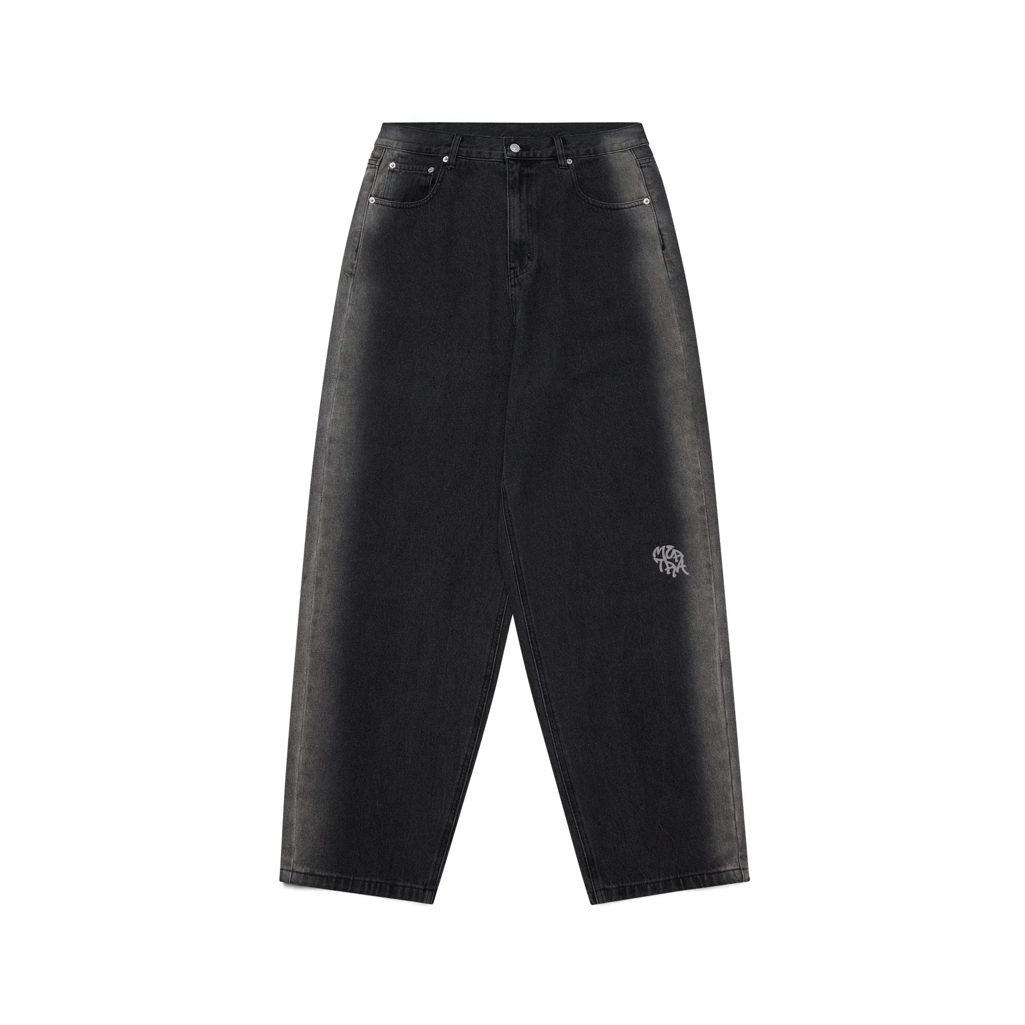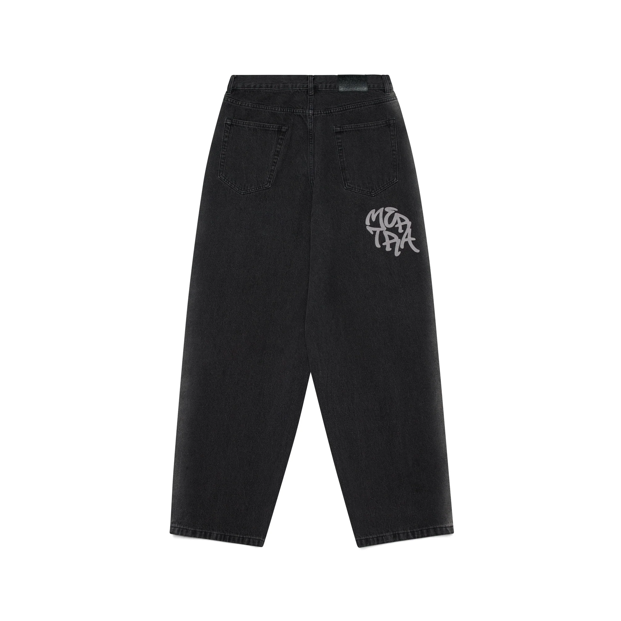 The Mertra Sider Denim (Black) brings a modern streetwear silhouette with its wide, structured fit and washed black finish. Built from durable heavyweight denim, it provides a sturdy feel while maintaining everyday comfort. The subtle fade adds character, giving the jeans a lived-in aesthetic without appearing overly distressed. A minimal Mertra emblem on the thigh adds a signature touch without overpowering the design. Perfect for pairing with hoodies, jackets, or tees, these jeans deliver versatility and a premium urban look.