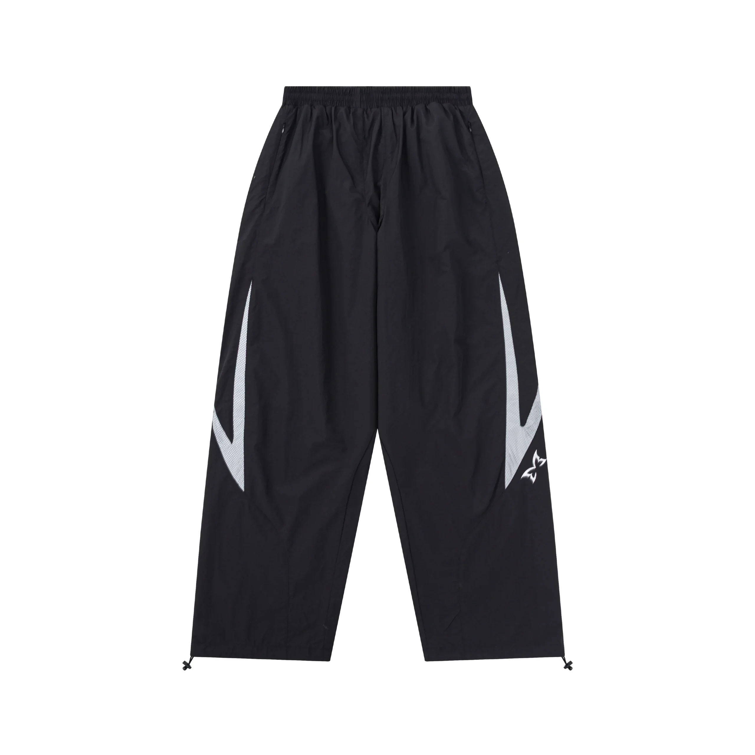 The Mertra Stealth Reflective Bottoms (Black/Grey) bring a bold mix of comfort, function, and reflective visibility—dropping perfectly for the Black Friday lineup. Built with a lightweight nylon shell and breathable mesh lining, these bottoms deliver effortless movement and all-day wearability. Reflective panels hidden under mesh applique accents elevate your look with standout night-time shine. The baggy silhouette and adjustable ankle toggles give you control over fit and style. Four hidden zipper pockets offer secure storage without interrupting the clean design. A must-have Black Friday new drop for anyone wanting performance utility with sharp streetwear edge.Mertra Stealth Reflective Bottoms (Black/Grey)