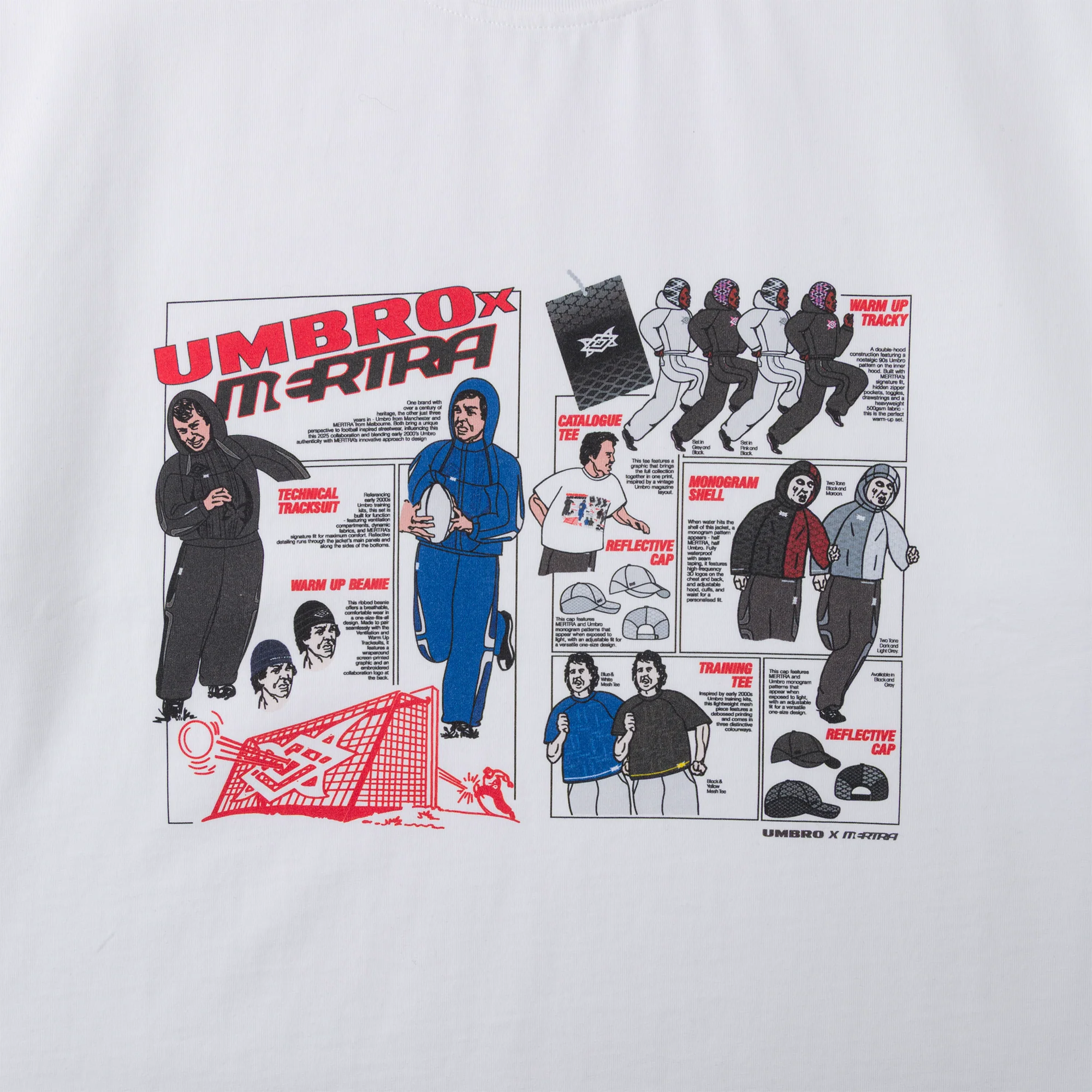 The MERTRA x Umbro Catalogue Tee celebrates the collaboration’s design language — minimal, athletic, and street-ready. Crafted from premium cotton with a soft finish, it features bold dual branding and a structured boxy fit that delivers both comfort and statement style. Perfect for everyday wear or as part of the limited-edition Mertra × Umbro Collection.